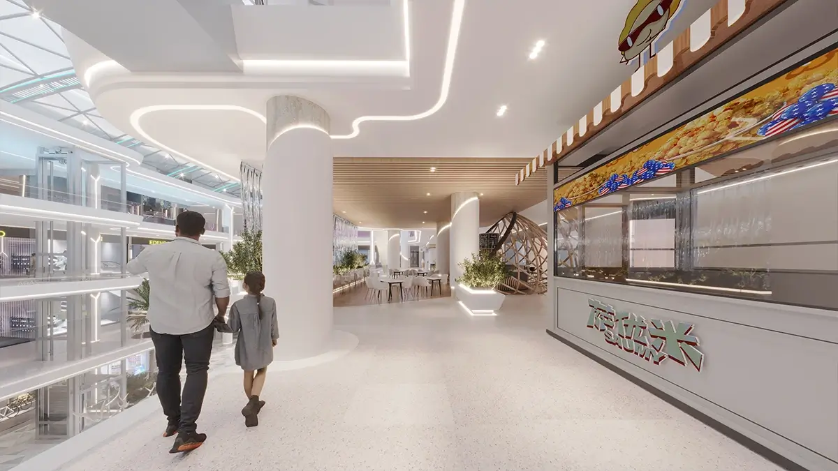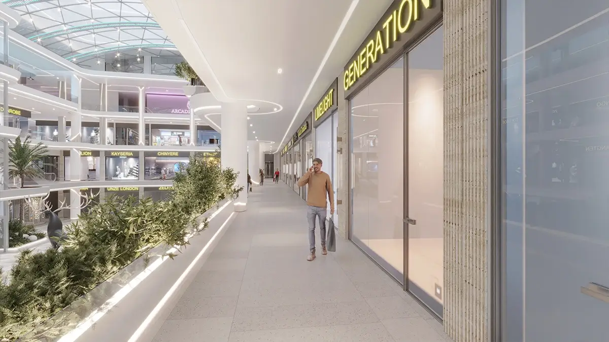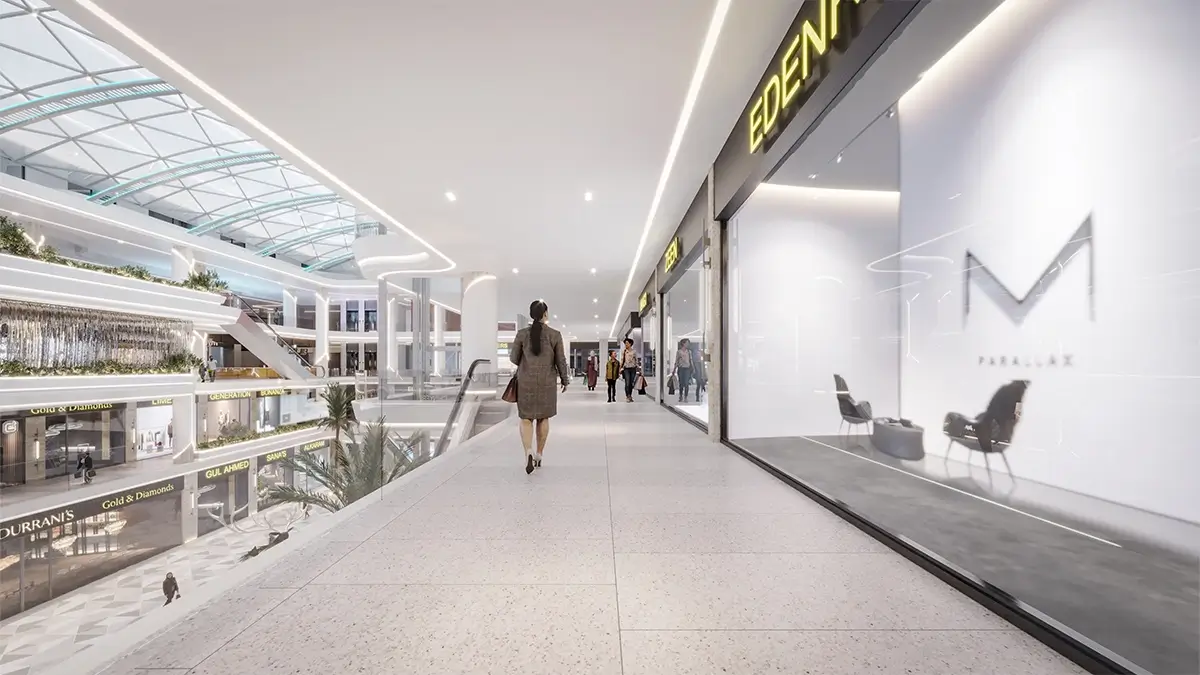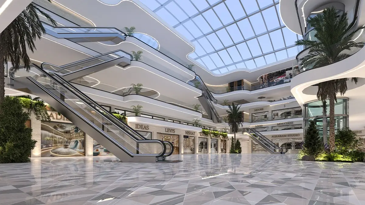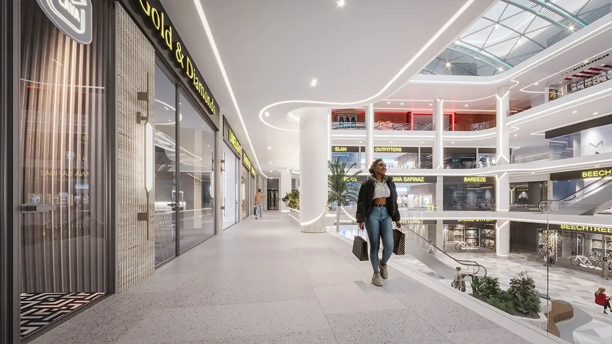The Ground Mezzanine Shops features a 28-feet high beamless structure, offering a spacious and open layout. It is ideal for high-value brands, giving them maximum visibility. Customers can enjoy a comfortable and elegant shopping experience in this modern space.